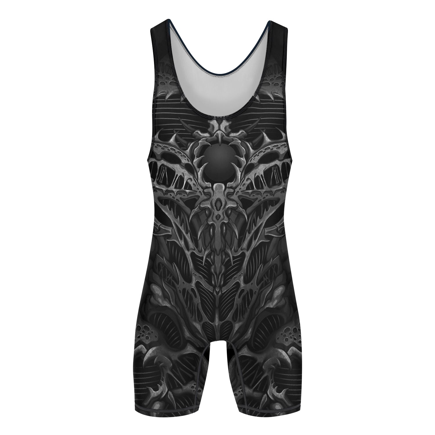 Perfect for wrestling, BJJ, and MMA training, the Biomechanical Singlet blurs the line between man and machine.