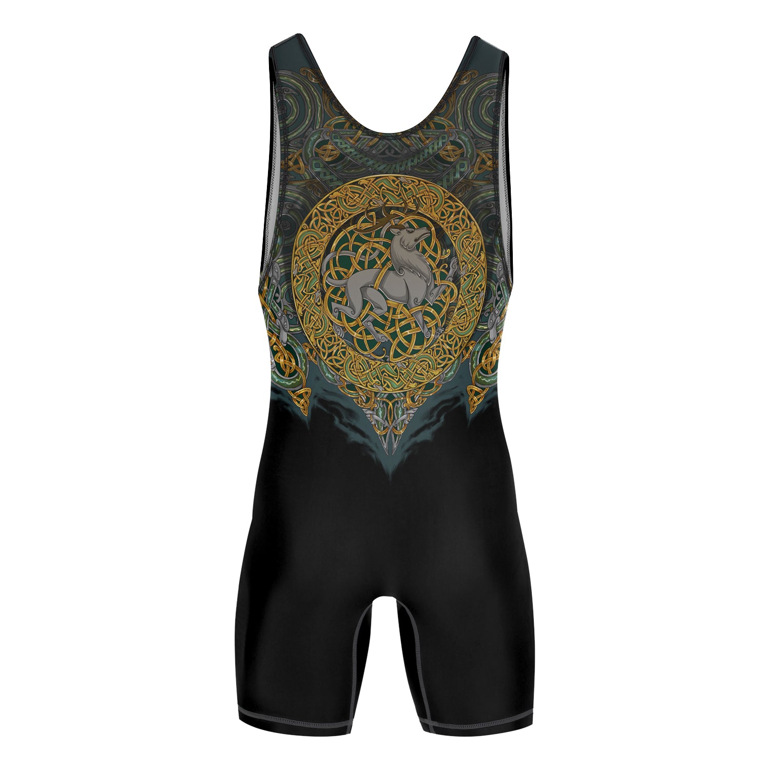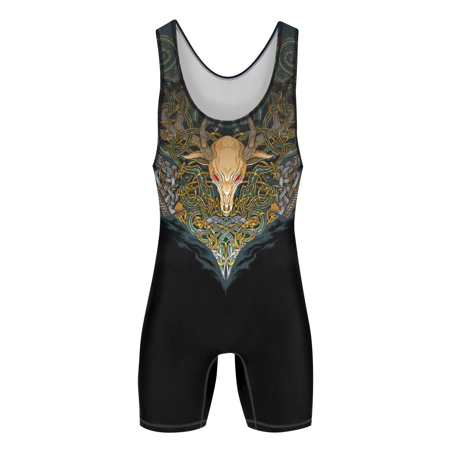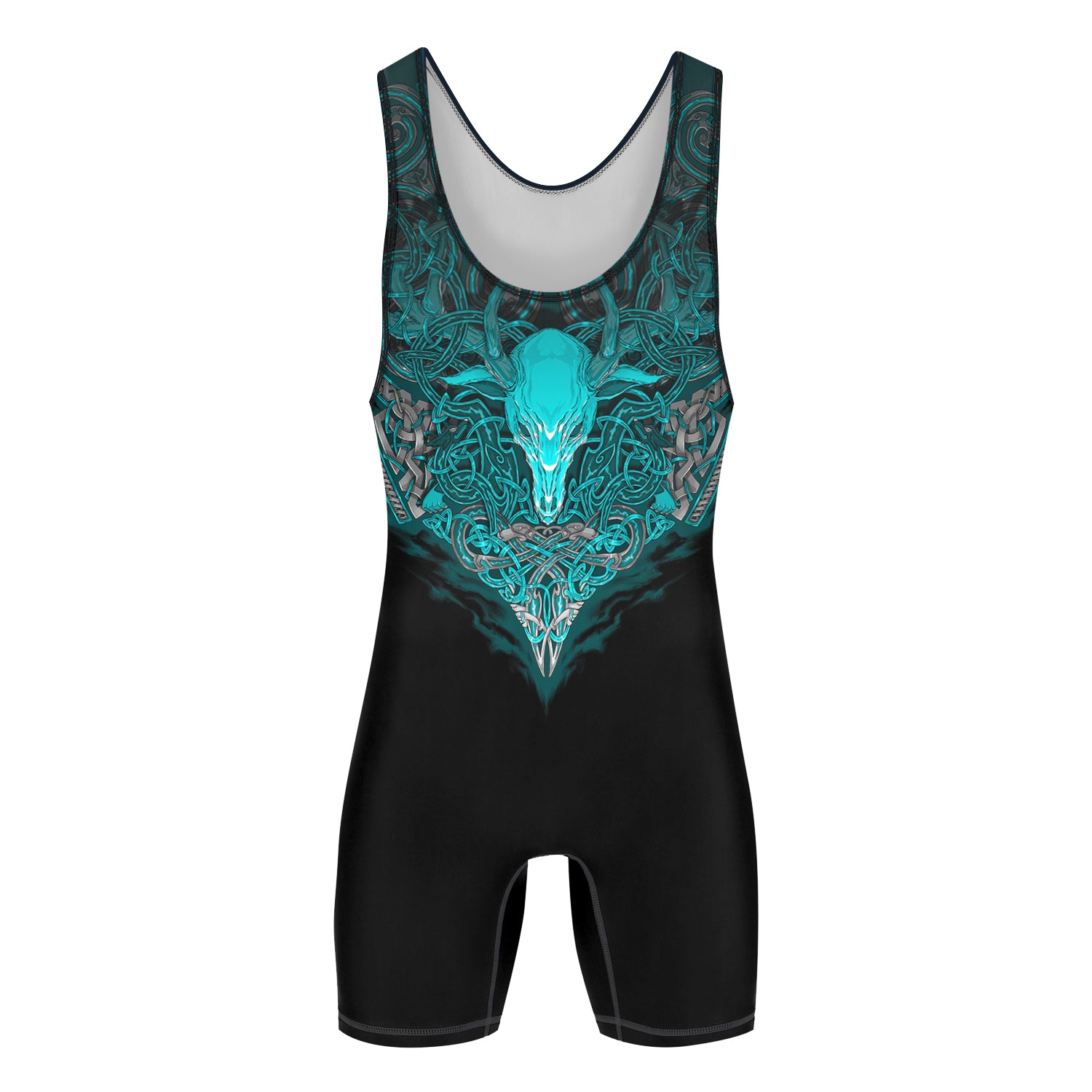 Channel the power of ancient warriors with our Celtic Wrestling Singlet, available in three bold colorways: Green Gold, Silver, and Frost Blue. Each singlet features original Celtic knotwork, including a rearing stag and horned skull emblem, representing strength, legacy, and endurance.