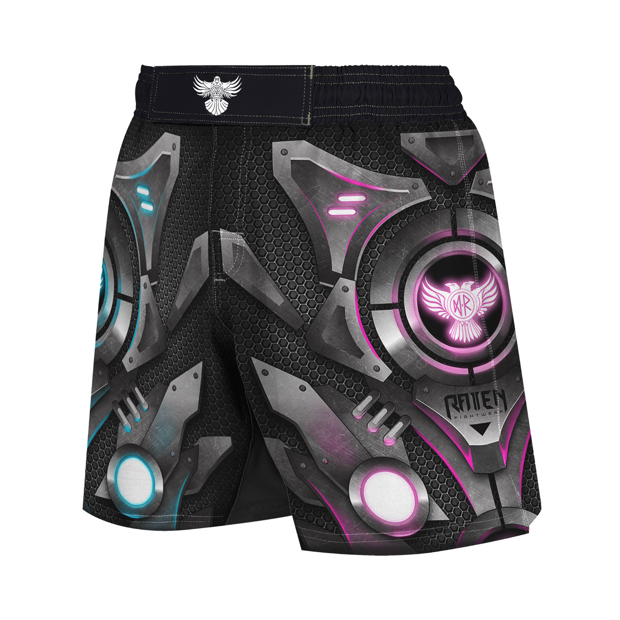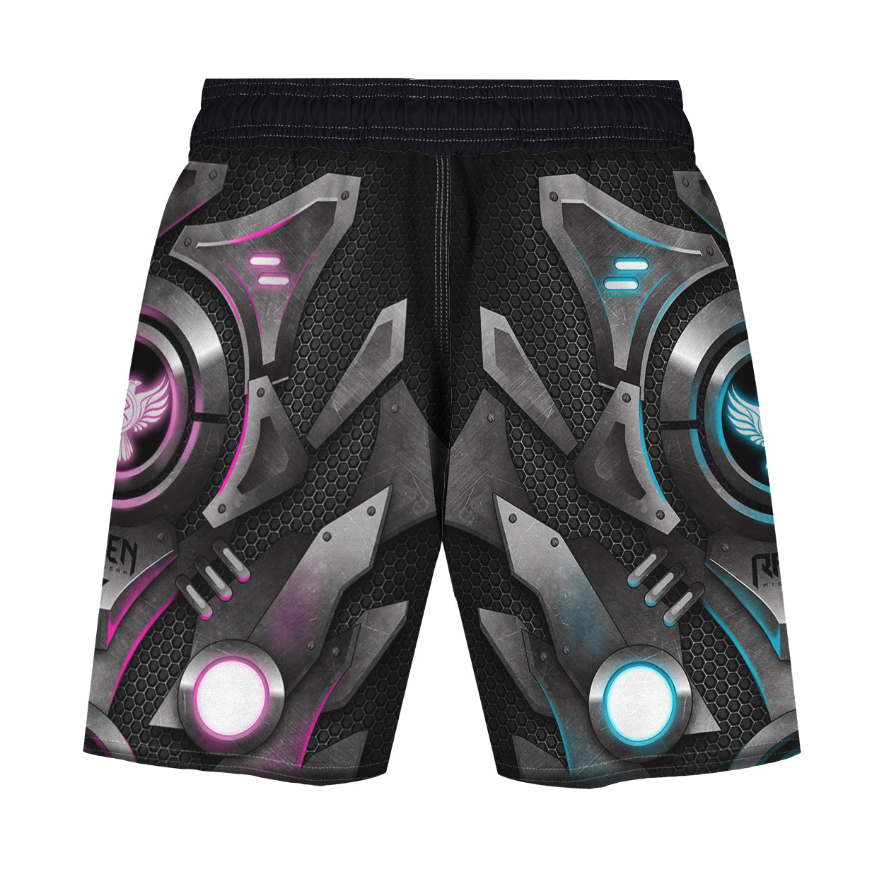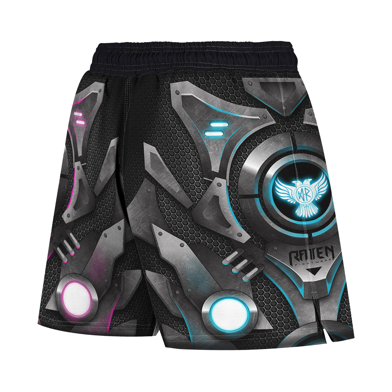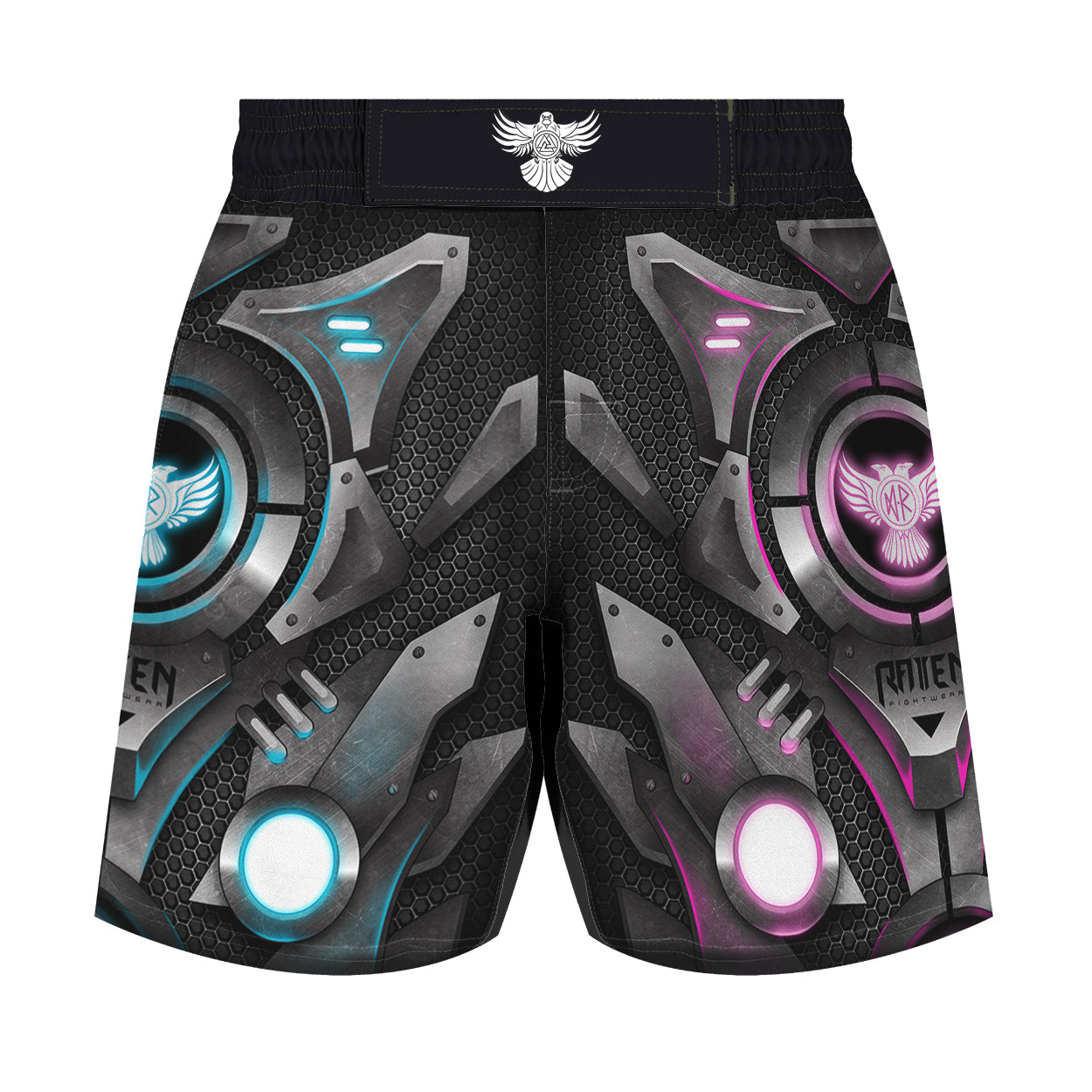Cyberpunk Hybrid Fight Shorts by Raven Fightwear bring futuristic edge to combat performance. Inspired by sci-fi tech and cybernetic armor, these shorts combine striking visuals with elite-level construction for grapplers, strikers, and cyborgs in training.