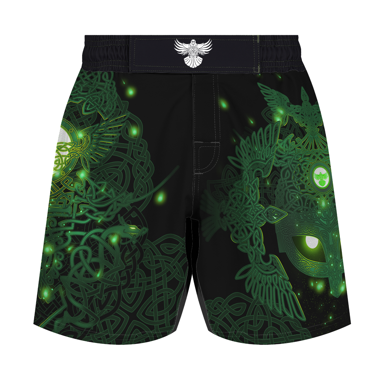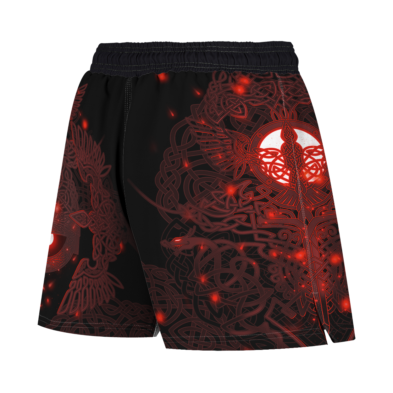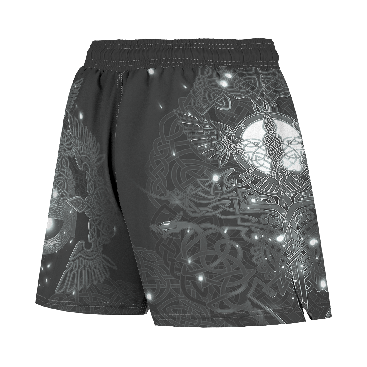 Step onto the mats with the power of the old gods. The Nordic 3.0 Hybrid Fight Shorts feature a battle-hardened Viking warrior on the left leg and a howling wolf under the moonlight on the right. With a design that blends traditional Norse mythology and contemporary combat aesthetics, these shorts are built for warriors who embrace strength, discipline, and relentless drive.