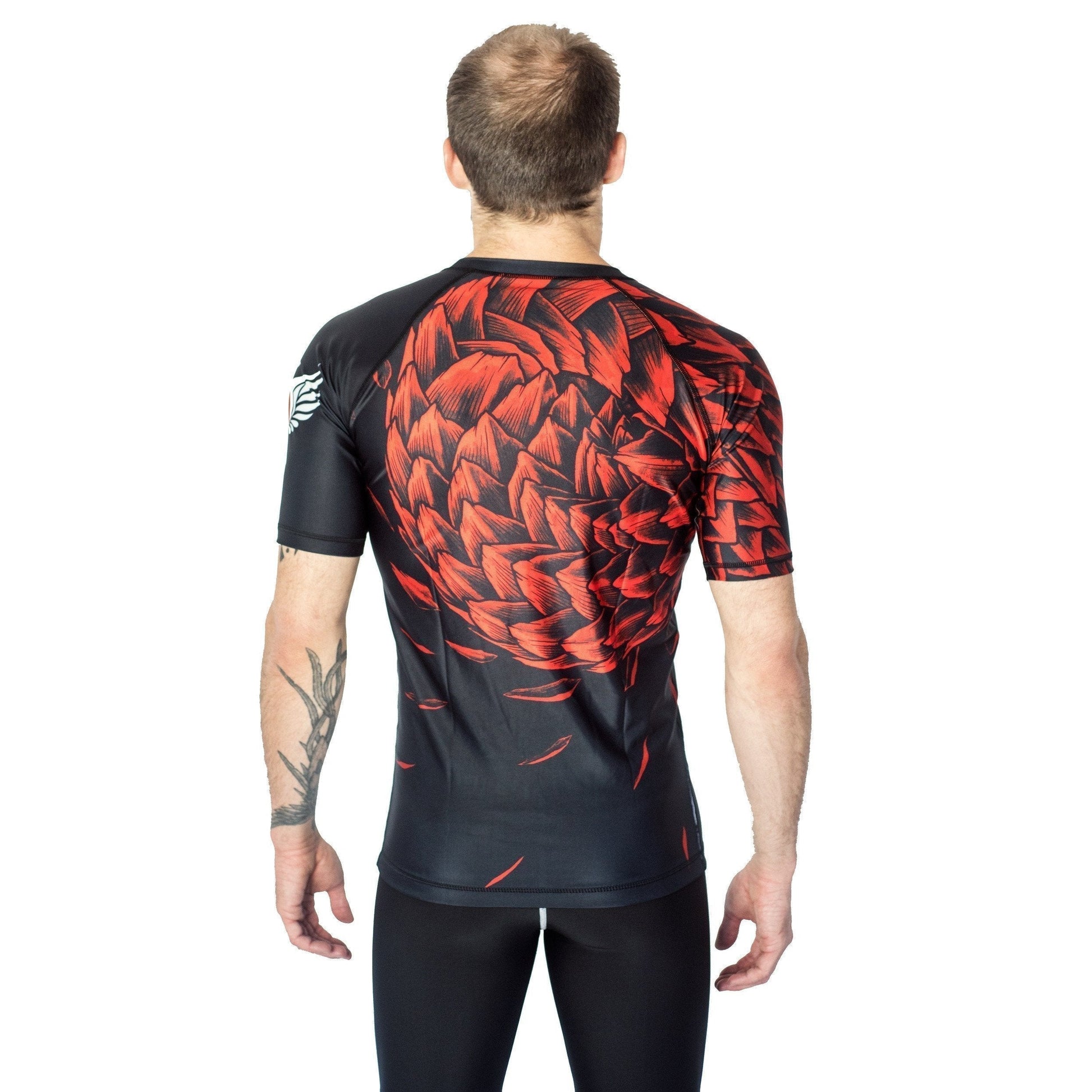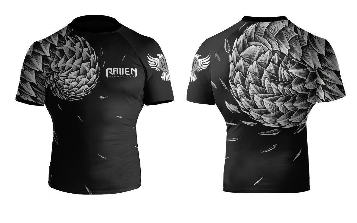 Each rashguard features a swirling design of high-definition scales wrapping across the chest, back, and shoulder—giving it a sleek, modern look while reflecting nature’s own armor. The clean, minimalist aesthetic is perfect for competitors who want to stand out without shouting. Pair it with matching spats or shorts for a complete kit that’s sharp, functional, and battle-ready.