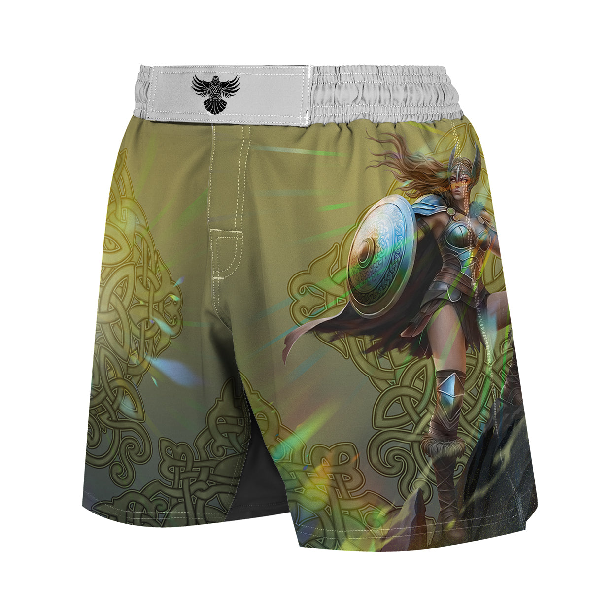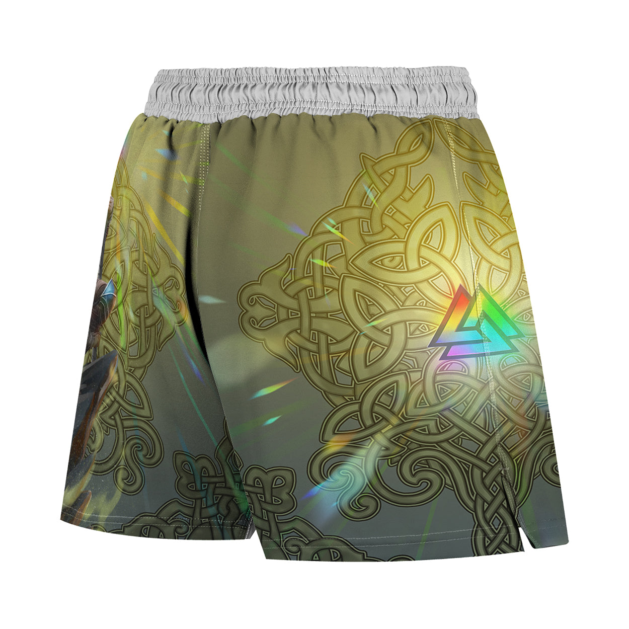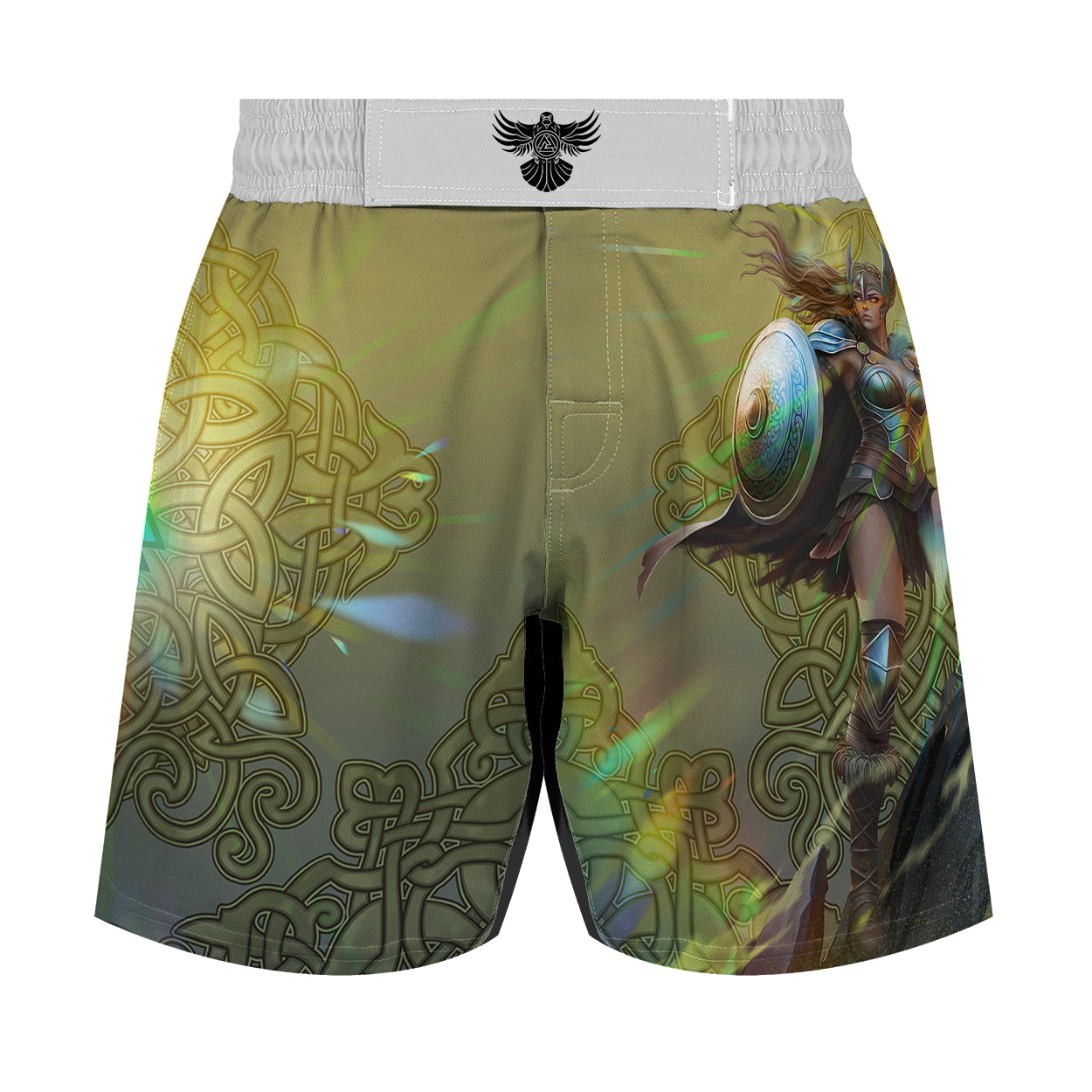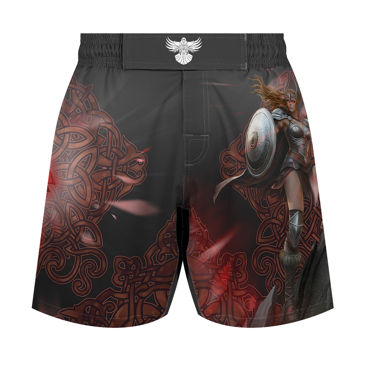 Forge your path like a Norse legend with the Valkyrie Men's Hybrid Fight Shorts – a tactical fusion of MMA and grappling design, infused with mythic power. These hybrid shorts feature the striking imagery of a Valkyrie warrior set against intricate Celtic knotwork, available in two bold variants: Bifrost (radiant iridescent) and Emberfall (intense black and red).