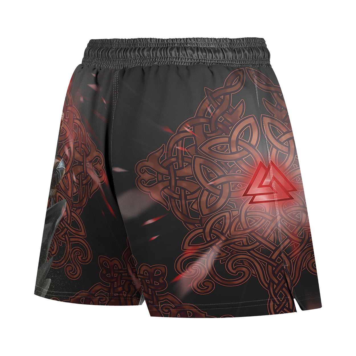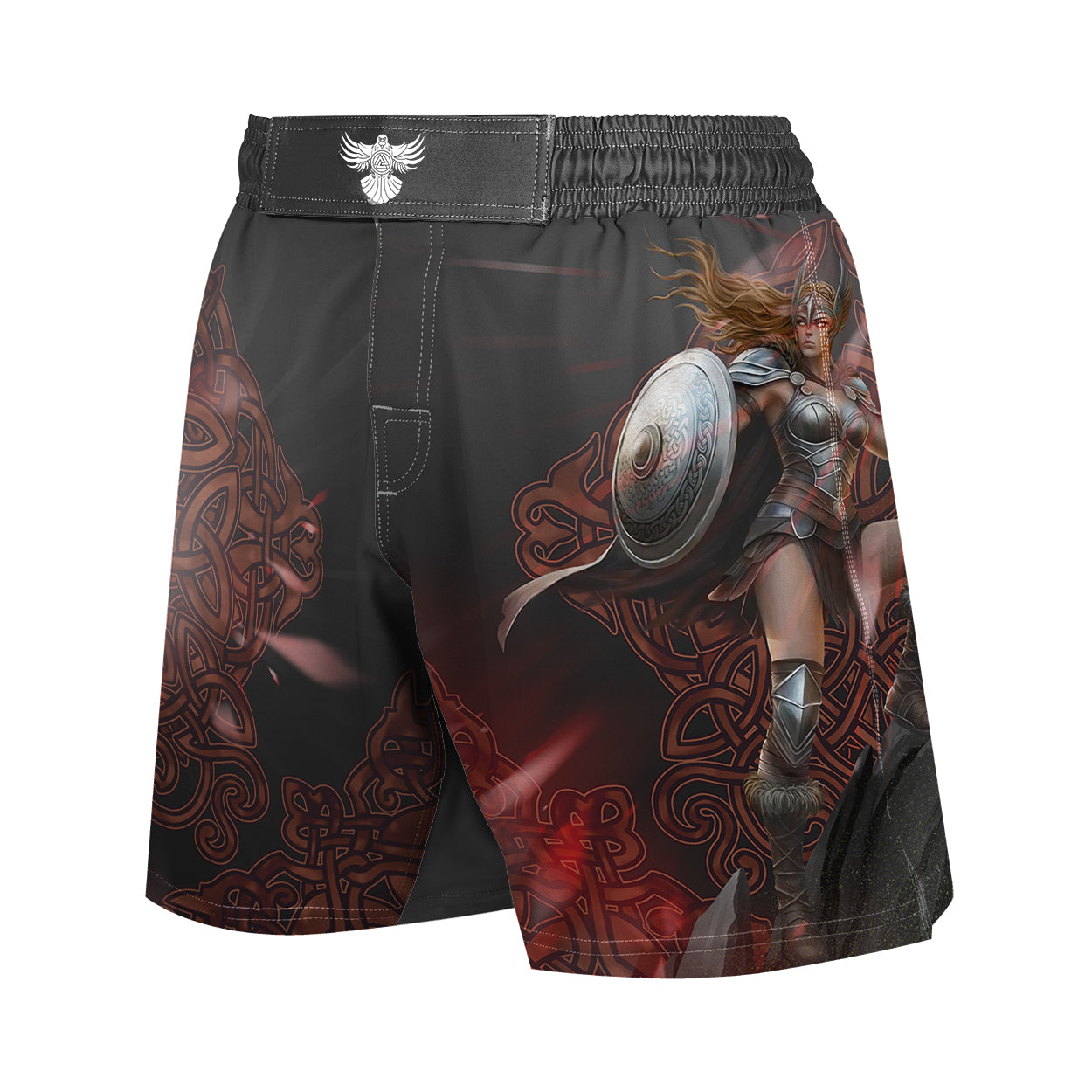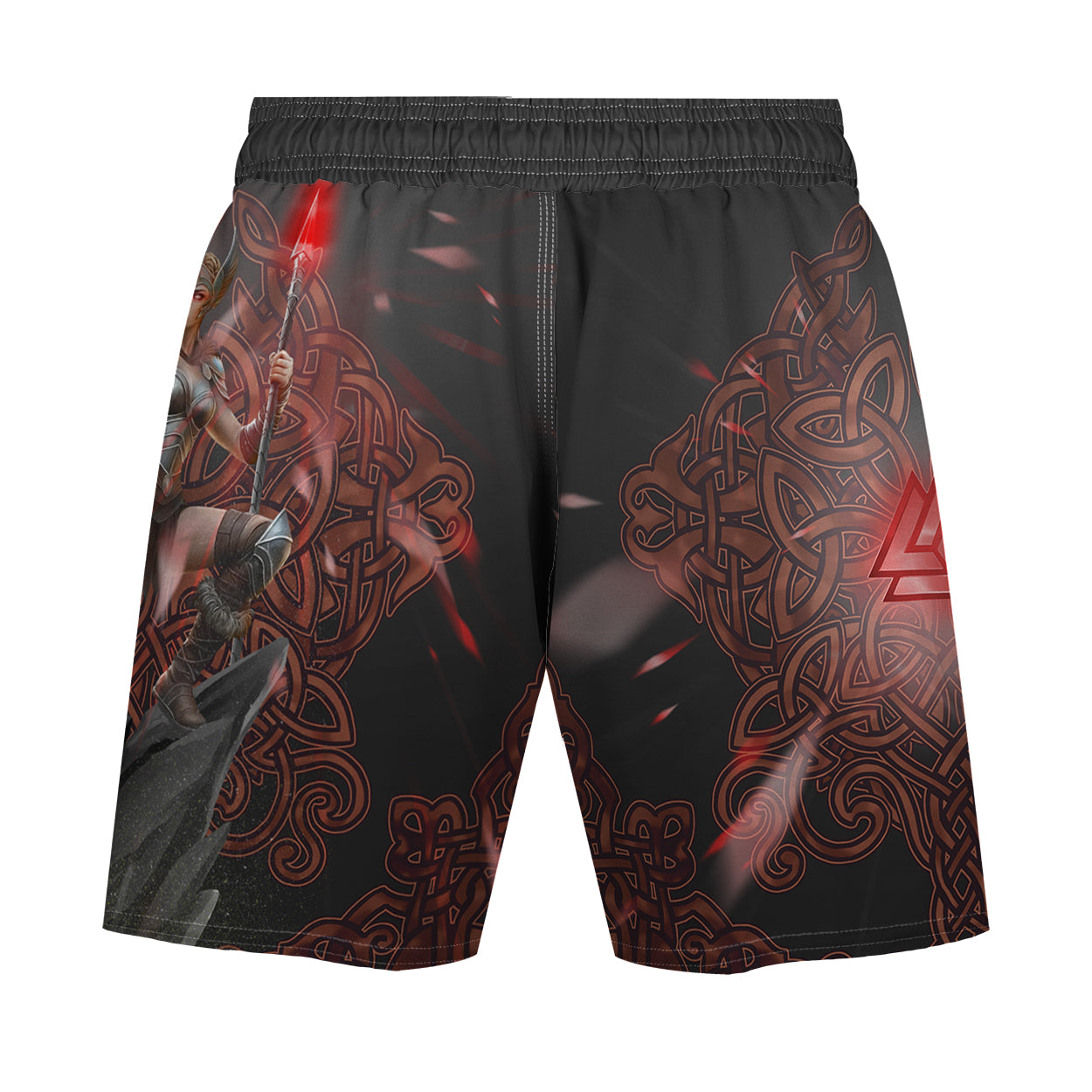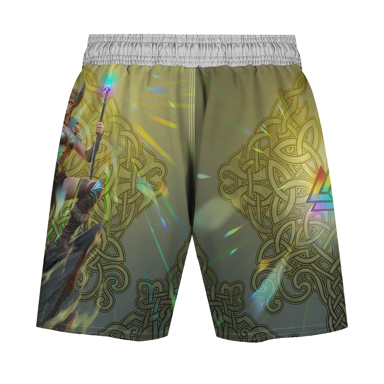 Forge your path like a Norse legend with the Valkyrie Men's Hybrid Fight Shorts – a tactical fusion of MMA and grappling design, infused with mythic power. These hybrid shorts feature the striking imagery of a Valkyrie warrior set against intricate Celtic knotwork, available in two bold variants: Bifrost (radiant iridescent) and Emberfall (intense black and red).