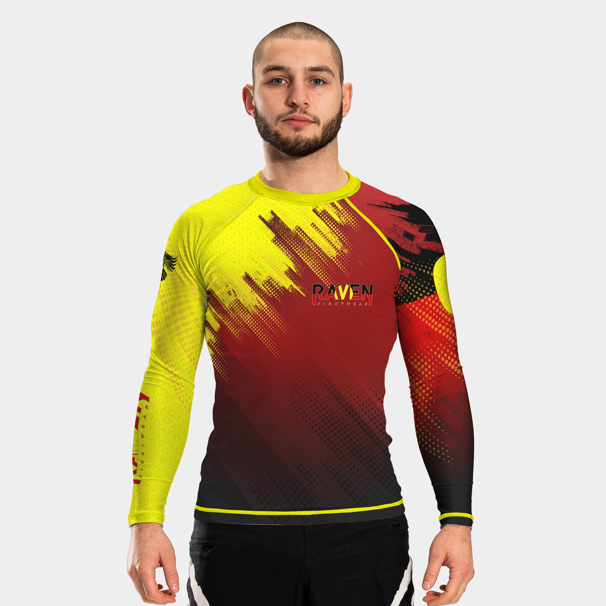 Valour Series Long Sleeve Rashguard by Raven Fightwear is designed for warriors who carry pride in their heritage, nation, or identity. Built for grappling, MMA, and high-intensity training, these rashguards feature bold, sublimated flag-inspired designs that won’t fade or crack—no matter how hard you roll.
